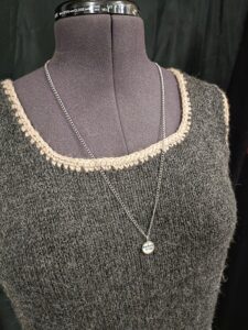Riipuksen metalliosa ja ketju on ruostumatonta terästä, tekstiä suojaa lasikapussi. Ketjun pituus on noin 36 cm, ketju ei sisällä lukkoa. Riipuksen halkaisija on noin 1,7 cm. Ketjun paksuus vaihtelee per riipus, kuvista näet ketjun paksuutta.