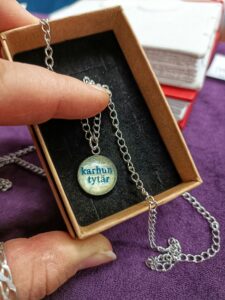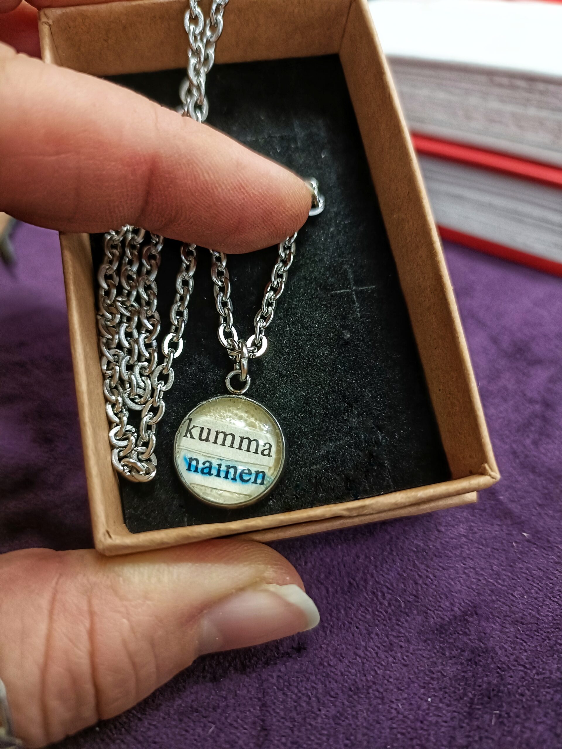 Riipuksen metalliosa ja ketju on ruostumatonta terästä, tekstiä suojaa lasikapussi. Ketjun pituus on noin 36 cm, ketju ei sisällä lukkoa. Riipuksen halkaisija on noin 1,7 cm. Ketjun paksuus vaihtelee per riipus, kuvista näet ketjun paksuutta.